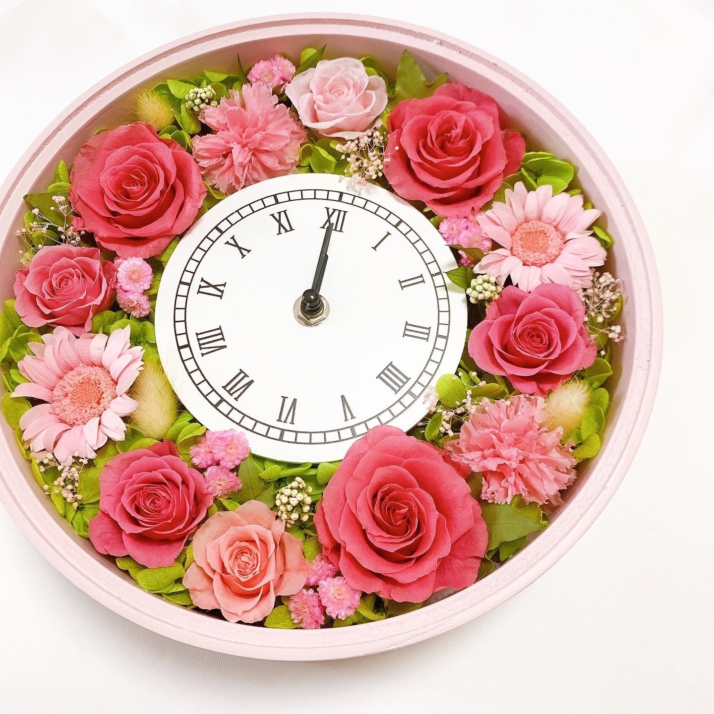 プリザーブドフラワー 花時計 フラワー時計 ピンク 時計 壁掛け時計 置き時計